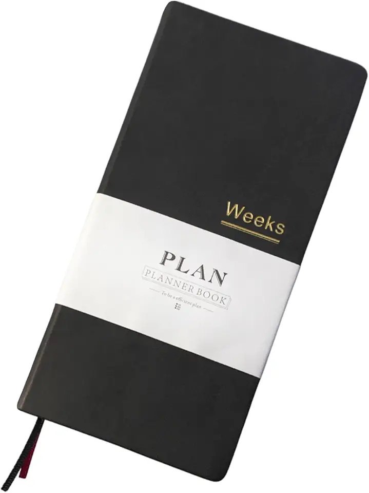 Fromthenon — PU Leather Weekly Plan Portable Planner Year Month Week Mini Slim Notebook Journal Schedule For Traveler Student Office (Black)